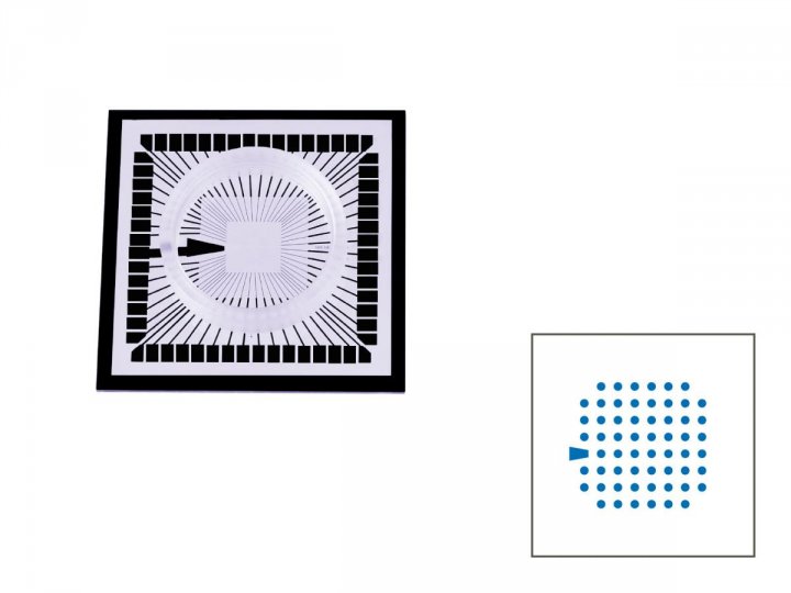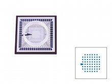 TiN electrodes, SiN isolator, contact pads and tracks opaque (TiN), with internal reference electrode, electrode grid 8x8, 60 electrodes, electrode spacing 100 µm, electrode diameter 12 µm, electrode height in total 40 µm, warranty: 6 months.
