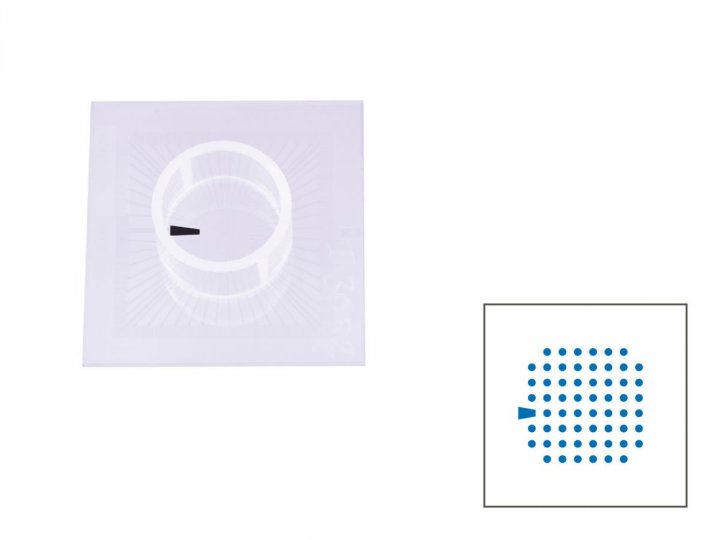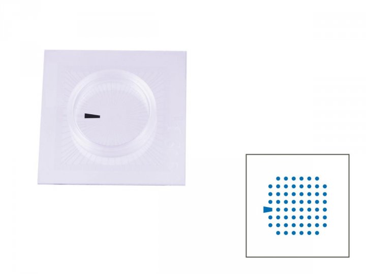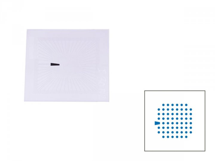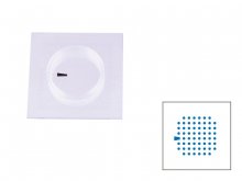 TiN electrodes, SiN isolator, contact pads and tracks transparent (ITO), with 1 internal reference electrode, electrode grid 8x8, 59 recording electrodes, electrode spacing 100µm, electrode diameter 10µm, warranty: 6 months.