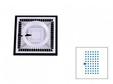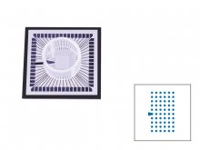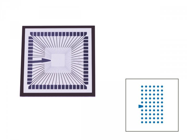 TiN electrodes, SiN isolator, contact pads and tracks opaque (TiN), with internal reference electrode, electrode grid 6x10, 60 electrodes, electrode spacing 500µm, electrode diameter 30µm, warranty: 6 months.