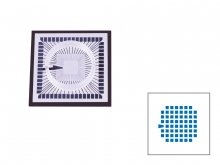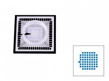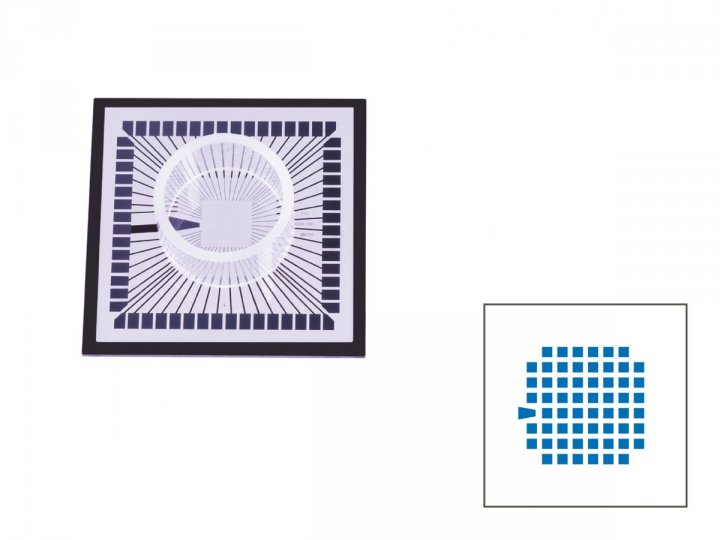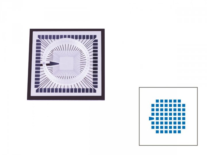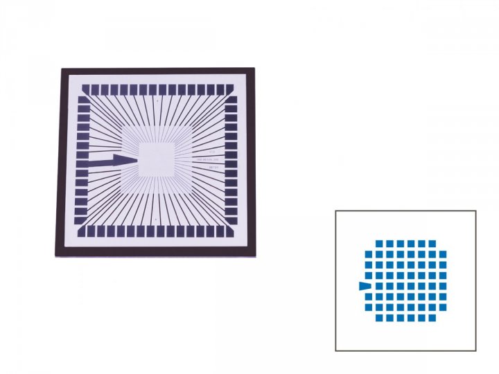 TiN electrodes (square), SiN isolator, Contact pads and tracks opaque (TiN), With 1 internal reference electrode, Electrode grid 8x8, 59 recording electrodes, Electrode spacing 200 µm, Electrode size 50 µm x 50 µm, Warranty: 6 months.